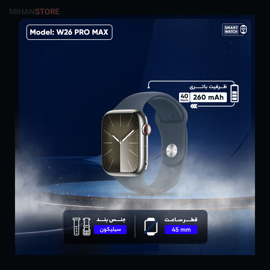 ساعت هوشمند W26-ProMax Special یک محصول کامل و کاربردی است که با ترکیب ویژگی‌های هوشمند و امکانات پیشرفته، تجربه کاربری فوق‌العاده‌ای را در اختیار شما قرار می‌دهد. این ساعت هوشمند از طراحی زیبا و مدرنی برخوردار است که نه تنها در نگاه اول شما را مجذوب خود می‌کند، بلکه با داشتن عملکرد بسیار کارآمد و عملی نیز می‌تواند نیازهای روزانه شما را به خوبی برطرف سازد. یکی از برجسته‌ترین ویژگی‌های این ساعت هوشمند، داشتن سنسورهای پیشرفته برای پایش فعالیت‌های ورزشی و سلامتی است. این سنسورها به‌صورت دقیق و لحظه‌ای میزان ضربان قلب، تنفس، خواب و دیگر جنبه‌های سلامت شما را رصد می‌کنند و در اختیار شما قرار می‌دهند. بنابراین با استفاده از این ساعت هوشمند، می‌توانید به‌راحتی از وضعیت سلامت خود مطلع باشید و در صورت نیاز اقدامات لازم را انجام دهید. علاوه بر این، ساعت هوشمند W26-ProMax Special به‌عنوان یک دستیار دیجیتال همیشه همراه، قابلیت‌های فراوانی برای کنترل و مدیریت زندگی روزانه شما دارد. به‌عنوان مثال، می‌توانید با یک ضربه ساده بر روی صفحه، اعلان‌ها و پیام‌های گوشی همراه خود را مشاهده کنید و به‌سرعت به آن‌ها پاسخ دهید. همچنین قابلیت کنترل موسیقی و پخش فایل‌های صوتی از طریق این ساعت هوشمند، تجربه لذت‌بخشی از شنیدن موسیقی را در اختیار شما قرار می‌دهد. ویژگی منحصربه‌فرد دیگر این ساعت هوشمند، همراهی آن با یک هدفون بلوتوثی است. این هدفون‌های با کیفیت بالا، امکان لذت بردن از موسیقی و پاسخ‌گویی به تماس‌های تلفنی را در هر زمان و مکان به شما می‌دهند. بنابراین با داشتن این مجموعه کامل ساعت هوشمند و هدفون بلوتوثی، شما قادر خواهید بود از تمامی امکانات و قابلیت‌های آن‌ها در زندگی روزمره خود بهره مند شوید. به طور کلی، ساعت هوشمند W26-ProMax Special را می‌توان یکی از پیشرفته‌ترین و کامل‌ترین محصولات موجود در بازار دانست که با ادغام فناوری‌های به‌روز و تجربه کاربری عالی، به شما این امکان را می‌دهد تا در هر لحظه به دنیای دیجیتال خود متصل باشید و از آن لذت ببرید.