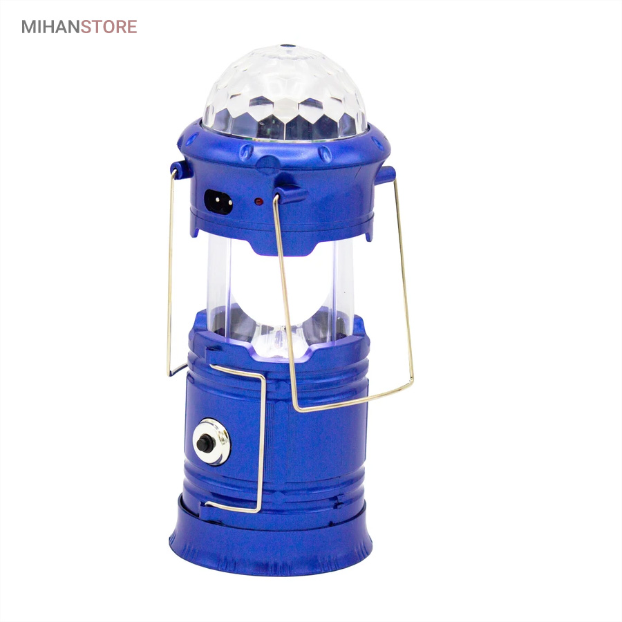 چراغ کمپینگ شارژی رقص نور دار قابل حمل به همراه رقص نور، محصولی با طراحی نوین و بسیار کاربردی است . این چراغ را میتوان تلفیقی از فانوس های قدیمی و چراغ قوه های جدید و رقص نور مدرن دانست .چراغ کمپینگ شارژی رقص نور دار، در واقع یک ابزار چند کاره است و میتواند به سادگی نیاز های شما در رابطه با نور را در مسافرت، پیک نیک و جشن های خانواگی و مواردی نظیر آن فراهم کند . شما میتوانید با کشیدن سر چراغ به سمت بالا (کشویی)، فانوس را روشن کنید و از آن برای تأمین نور محیط استفاده نمایید. چراغ اصلی فانوس دارای 6 چراغ ال ای دی است که در کنار هم نور قوه ای را ایجاد میکنید. همچنین در بالای این فانوس یک شیشه منشوری وجود دارد که هنگام روشن کردن با چرخش و نور پردازی فضای دل انگیزی را برای شما به وجود میآورد. این محصول خرید خوبی برای استفاده در کمپینگ و طبیعتگردی خواهد بود.ورودی برق روی دستگاه بوسیله سیم همراه به برق وصل شده و چراغ را شارژ مینماید تا بتوانید به صورت بی سیم از چراغ استفاده نمایید.خروجی یو اس بی روی دستگاه نیز برای شارژ تلفن همراه شما تعبیه شده است و برای شارژ کردن گوشی موبایلتان است.جنس بدنهی این محصول سبک و کم حجم، جنس بدنه از ABS + PC، محکم و بادوام است که بهسادگی آسیب نمیبیند و این امکان را به شما میدهد تا مدتزمان زیادی بهصورت مستمر از آن استفاده کنید. این محصول وزن قابلقبولی دارد و شما میتوانید بهراحتی آن را حمل کنید و در سفرها به همراه داشته باشید.