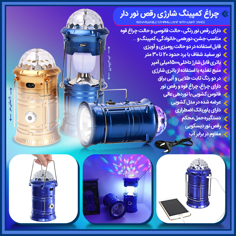 ویژگی های چراغ کمپینگ شارژی رقص نور دار: